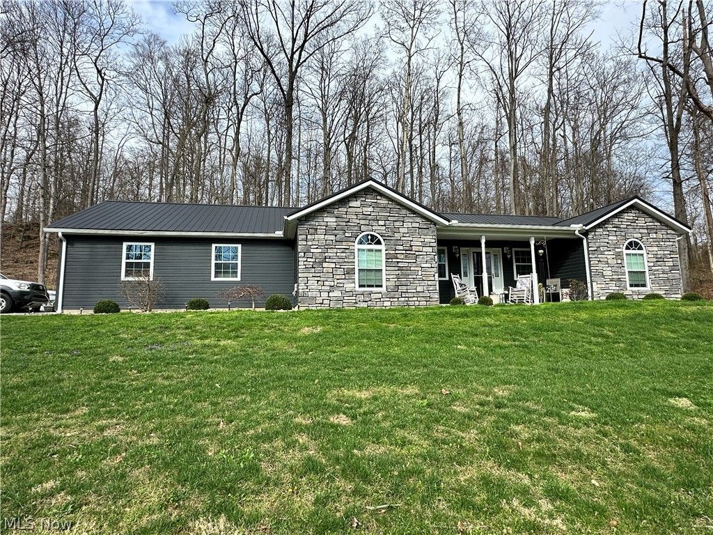 Nestled on 3.95 acres, this beautifully maintained 2019 Built ranch home offers the perfect blend of modern comfort and peaceful country living. Featuring both an attached and detached garage, this property provides ample space for vehicles, storage, or hobbies. Inside, you will find an open and airy layout highlighted by vaulted ceilings throughout, creating a spacious and inviting atmosphere. The home includes 3 bedrooms and 2 full bathrooms, with a generously sized primary suite offering a private retreat complete with a double vanity, walk-in shower, and large walk-in closet. The galley-style kitchen is efficiently designed for everyday living, while a dedicated laundry room adds convenience. Step outside to enjoy the covered front porch or relax on the covered back patio overlooking the scenic acreage, enhanced by a beautiful retaining wall and concrete sidewalks. The home exterior features vinyl siding, attractive rock accents, and a metal roof, combining style and low maintenance. The property offers the ideal mix of functionality, charm, and peace. This is perfect for those seeking a move-in-ready home. All appliances stay with the home, including a water filtering system. Seller is retaining mineral rights.
